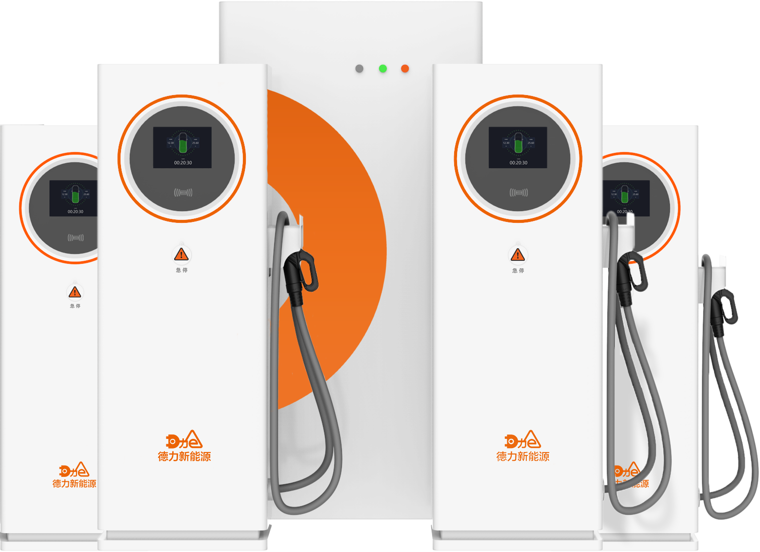 DLK-600K分体式直流充电堆采用分体式结构,基本构成包括功率变换单元、直流充电 终端。它们之间通过电线连接成一套宪整的直流充电机。分体式直流充电堆是专门为 快充型电动汽车设计,该系列产品可以在城市集中式充电站、城市公共充电站、专用 车辆充电站(公交、物流、出租车等)、工业园停车场、商业中心停车场、高速公路服务 区、旅游区停车场等场所的安装使用。